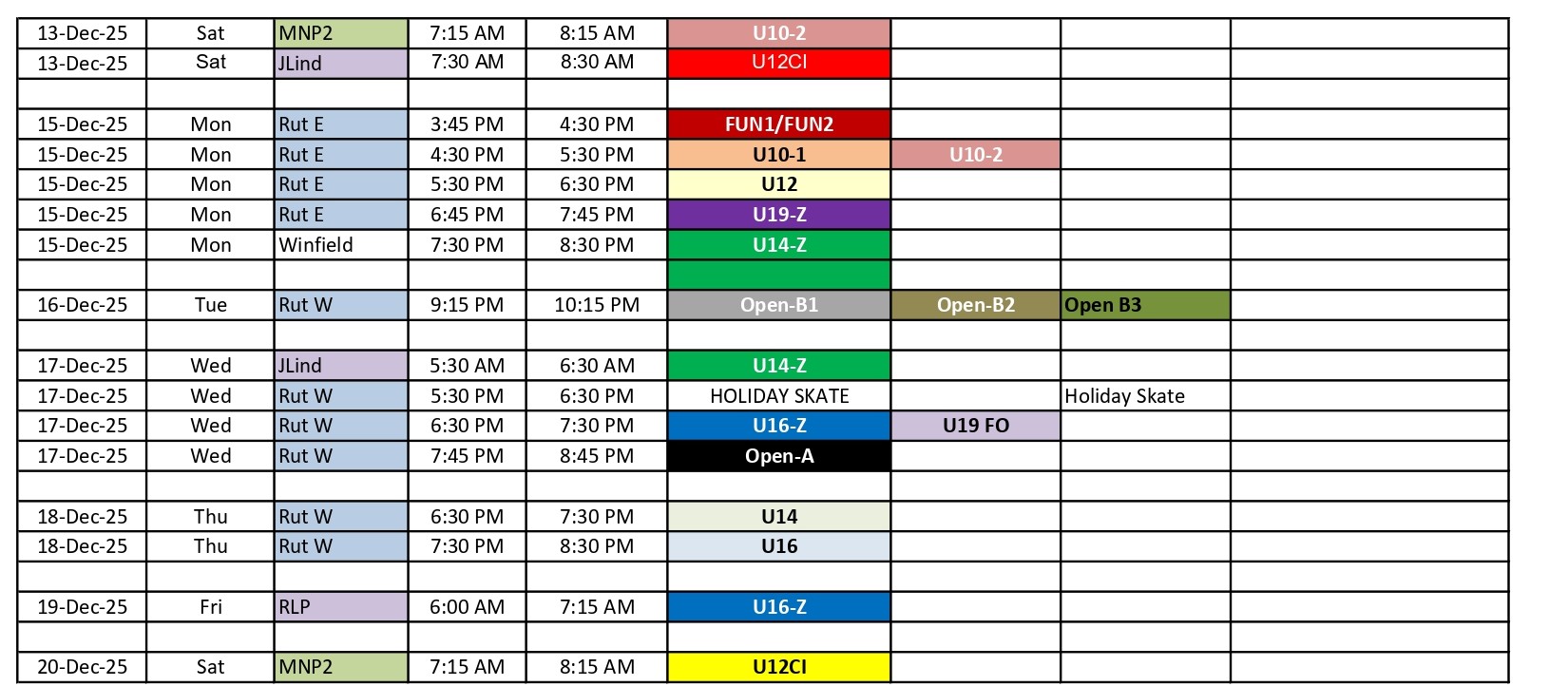 KRA Ice Schedule - October 18 - December 20, 2025 (download